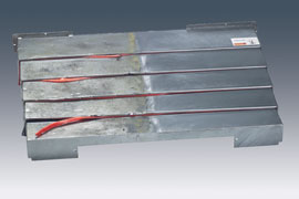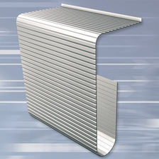 Apron cover is made up of aluminium strips with fabric as base. One end is fitted to moving carriage and other freely suspended with dead weight or fitted to bed. They form the simplest type of protective cover. In conjunction with roll-up mechanism, Apron covers can become an effective compact protection. |